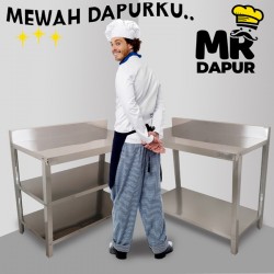 Meja Stainless Serbaguna MS1 dari Mrdapur dengan ukuran 100x50x80 cm utk segala kebutuhan dapur anda.