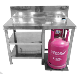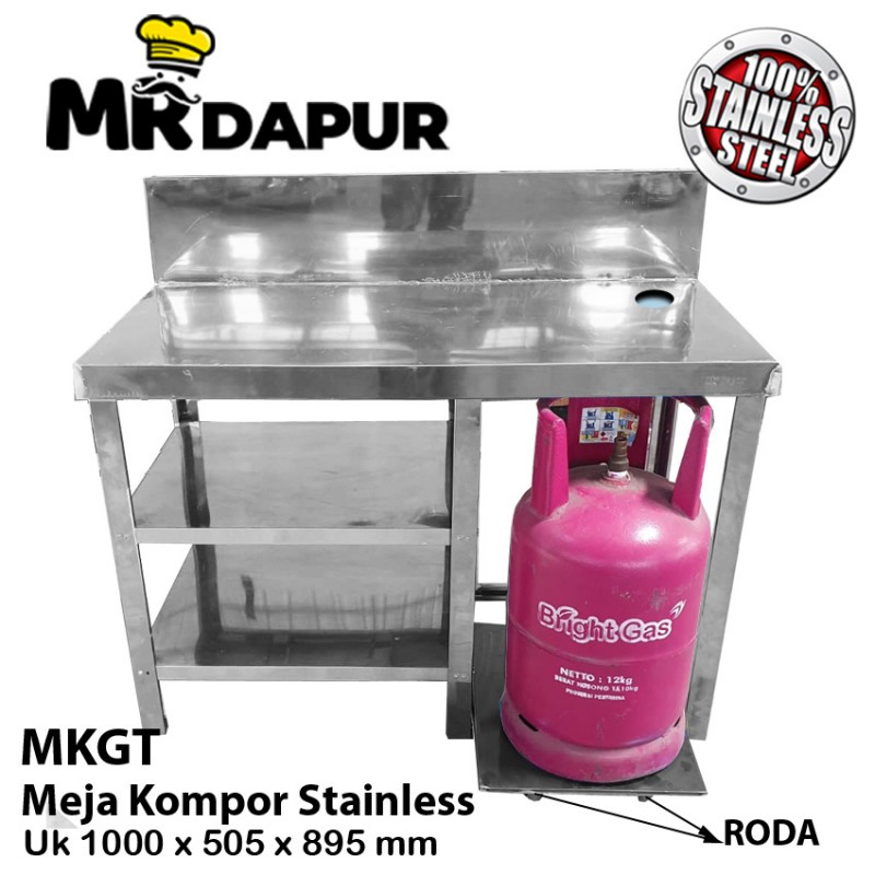 MKGT inovasi terbaru dari Mrdapur dengan ukuran 100cm x 50 dan tinggi 80 cm berarti anda memiliki ruang lebih utk tempat kompor dan alat memasak lainnya. Dengan rak LPG dengan roda di bawah meja akan memudahkan anda utk menaikan dan menurunkan tabung LPG 12 kg.